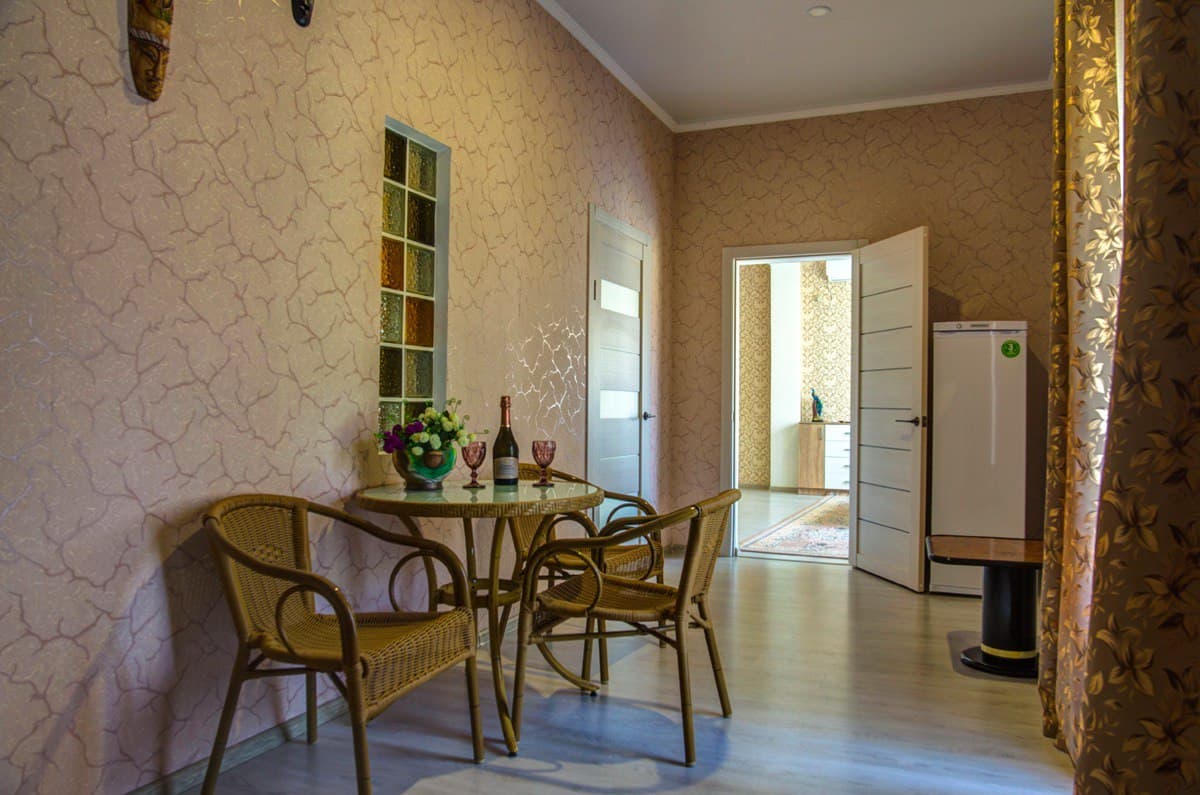 | Апартаменты 6-местные 2-комнатные | 60 кв.м. | 6 чел. | Мебель (вешалка, диван, зеркало, кровать двуспальная, прикроватные тумбочки, стол, стулья, шкаф), Об... | |